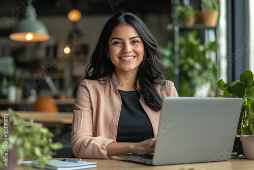 woman, laptop, working, smiling, office, business, professional, desk, cafes, cafes, indoor, technology, happy, focused, confident, casual attire
