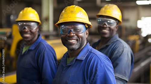 men at work, safety, industrial, smiling, happy, people, man, factory, team, equipment, protective, gear, helmet, goggles, blue, yellow, manufacturing, employee, positive, professional, focused, confident, industry, labor, teamwork, cooperation, dignified, diverse, portrait, community, togetherness, success, pride, achievement, production, dignity, respect, united, workplace, cheerful, content, determined