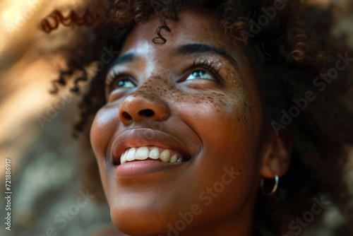 woman, happy, african, american, people, nature, black, person, healthy, young, beauty, face, portrait, confident, sunlight, girl, candid, lady, hair, female, model, real, joy, relax, freedom, closeup, white, adult, fun, casual attire, sunny, fashion, curly, fresh, teeth, enjoy, expression, carefree, 1, lifestyle, beautiful, natural, happiness, confidence, outdoors, attractive, cheerful, laughing