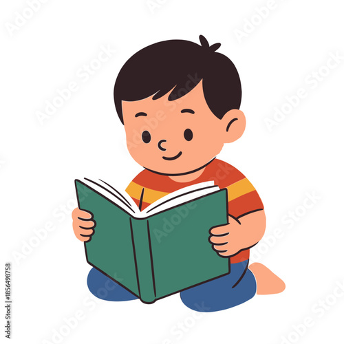 boy, reading, book, children, learning, education, children, happy, student, cognition, childhood, activity, indoor, leisure, development, literacy, school, study, imagination, discovery, growth, preschool, elementary, youth, literature, storytelling, open book, concentration, interest, joy, smile, sitting, floor, cartoon, illustration, vector, simple, flat, graphic, character, person, human, male, small, cute, dark hair