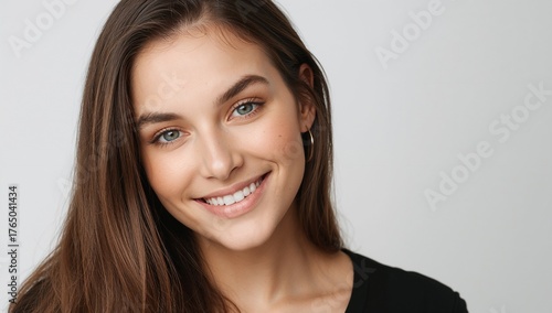 portrait, woman, female, smiling, happy, young, brunette, brown hair, blue eye, freckle, natural beauty, model, head shot, studio, isolated, white background, authentic, attractive, lifestyle, casual attire, people, confidence, positive, beautiful, face, emotion, candid, expression, friendly, healthy, cheerful, modern, minimalist, photorealistic, professional, natural light, elegance, youth, person, closeup, photo, simplicity, joyful, fresh, serene, fashion