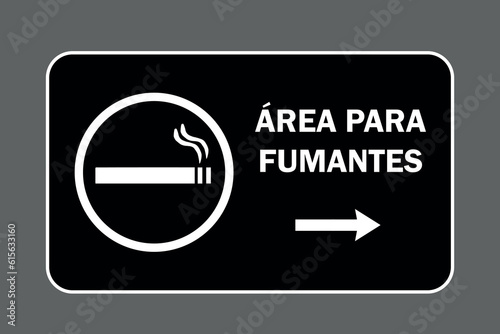 Smoking area. Black rectangular plate with white details. Blank informational text. Warning modern art.