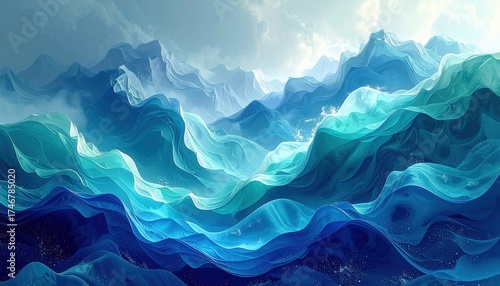 Smooth abstract blue wave texture with flowing light and soft silk pattern design