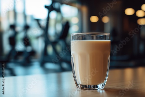 Smoothie in gym, out-of-focus background