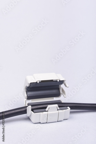 material, ferrite, iron, magnet, magnetic, snap, plastic, cable, emission, suppression, noise, electronic, technology, ferromagnetic, clamp, current, core, impedance, filter, filtering, filtration, electromagnetic, clip, frequency, cord, ac, bead, protection, clip, nickel, zink, immersed, interference, computer, component, usb, quality, signal, isolated, nobody, macro, absorption