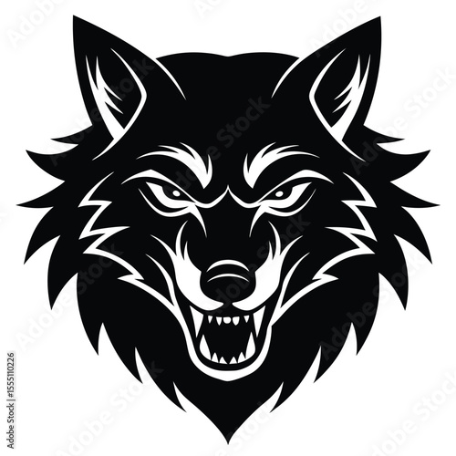 wolf, snarling, angry, aggressive, growling, fierce, predator, canino, dog, wild, animal, beast, mascot, tribal, tattoo, logotype, emblem, symbol, black, silhouette, monochrome, strong, powerful, dangerous, hunter, alpha, pack, wilderness, nature, wildlife, mythology, legend, fantasy, creature, brute, savage, intense, detailed, graphic, illustration, vector, sharp, fang, teeth, eye, ear, fur
