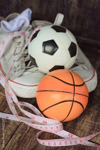 sneakers and football basketball
