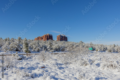 Snow Covered Landscape in the Sedona Arizona Red Rocks in Winter