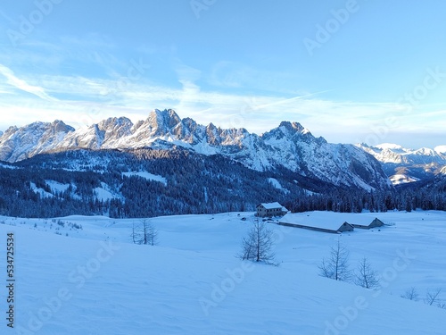 snow, winter, mountain, landscape, sky, blue, white, nature, cold, ice, travel, panorama, frost, glacé, alps, alpine, dolomite, italy, no one, no people