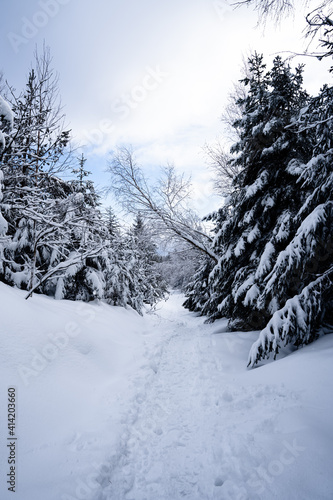 spruce, tree, forest, winter, mountain, landscape, snow, frost, season, tour tourism, nature, adventure, hiking, trail, timberland, scenery, cloud, white, ice, roamer, no people, exploring