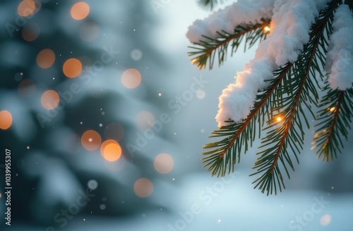 christmas, winter, snow, light, tree, pine, tree branch, nature, holiday, season, december, background, cold, frost, bokeh, blurred, festive, celebration, decoration, magic, glowing, outdoors, evergreen, forest, snowfall, scenic