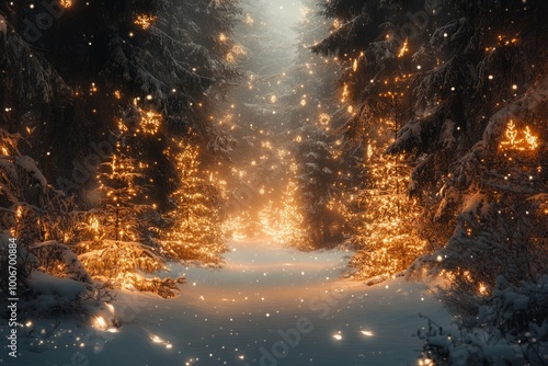 christmas, winter, snow, light, forest, path, tree, holiday, night, nature, magical, wonderland, scenic, beautiful, serene, peaceful, tree, decoration, festive, celebration, december, season, glowing, sparkle, bokeh, outdoors, cold, frost, white, background