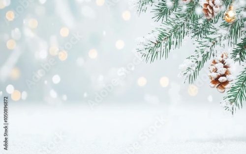 evergreen, snow, pine cone, winter, christmas, holiday, nature, tree branch, serene, seasonal, festive, outdoors, natural, cold, tranquil, peaceful, snowy, frosty, landscape, decoration, christmas, ornament, background, banner, poster, new, year, border, 2025