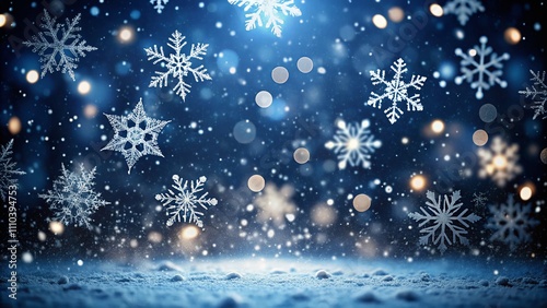 Snowflakes Falling on a Dark Background - Perfect for Winter Season Decoration and Seasonal Designs in Low Light Photography