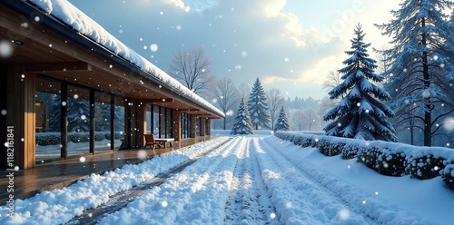 Snowflakes gently fall on Telford Centre's roof, landscape, falling