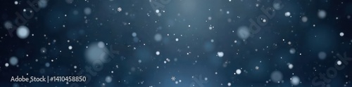 Snowflakes gently falling from grey sky against dark space, serene, slow