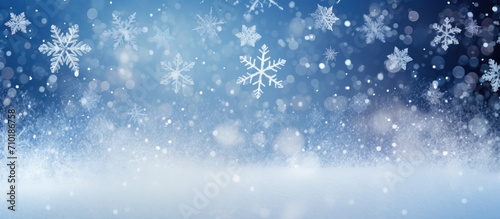 Snowflakes on snowy backdrop. Room for message.