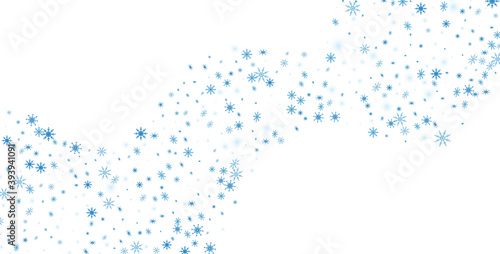 Snowflakes. Snow, snowfall. Falling scattered blue snowflakes on a white background. Vector