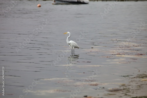 Snowy Egret, Egretta thula, on fishing,Paracas, Peru
