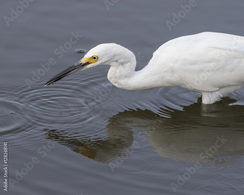 Snowy Egret Wading and Fishing gets a shrimp