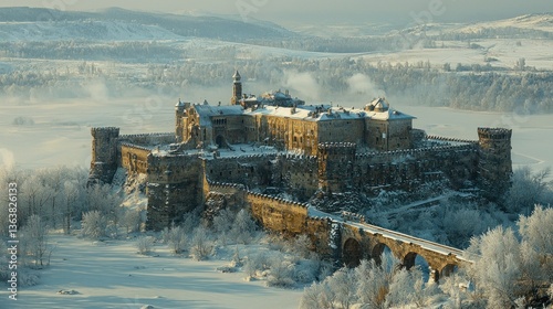 castle, winter, snow, fortress, historical, architecture, landscape, bridge, tree, frost, river, cold, scenic, view, building, ancient, stone, wall, tower, glacé, white, icy, serene, calm, peaceful, beautiful, magnificent, picturesque, rural, countryside, panorama, aerial, royals, mediaeval, history, travel, destination, holiday, season, wonder
