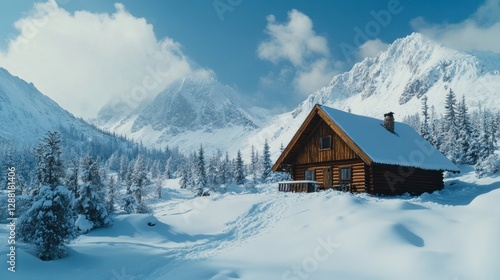 Snowy mountain cabin nestled in a winter wonderland. (1)