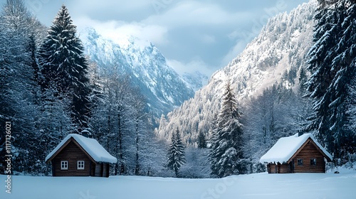 winter, snow, cabin, mountain, landscape, nature, serenity, forest, cold, calmness