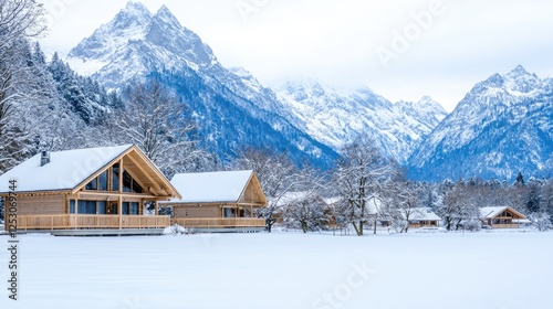 Snowy mountain cabins winter landscape vacation