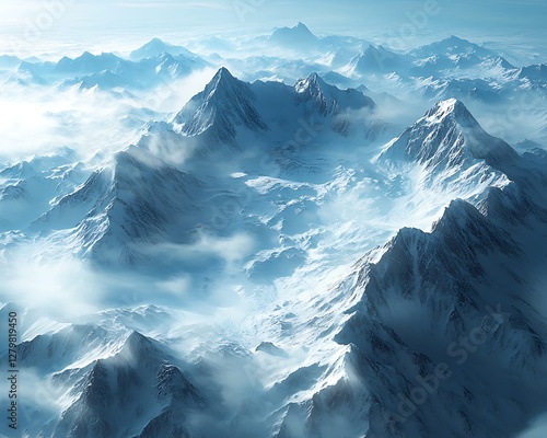 mountain, snowy, aerial, view, sunrise, misty, cloud, peak, landscape, winter, high, altitude, glacé, travel, adventure, nature, panorama, cold, cloudscape, mountainous, exploration, scenery, majestic, dramatic, stunning, beautiful, imposing, huge, expansive, remote, epic, breathtaking, peak, glacier, mist, fog, vale