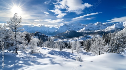 winter, snow, mountain, landscape, nature, cold, sun, sky, tree, white, blue, scenic, beautiful, view, season, frost, alpine, peak, idylli, serene