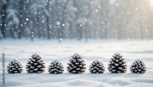 Snowy Pine Cones Winter Wonderland Scene