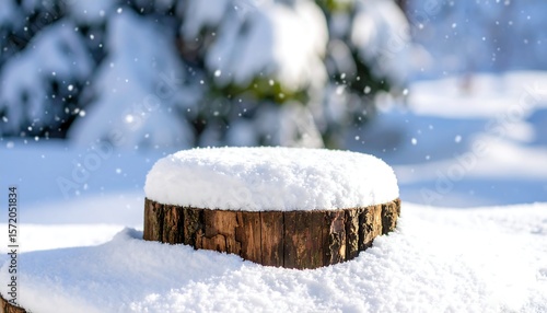 snow, winter, stump, wood, tree, forest, cold, nature, landscape, display, snowy, white, glacé, fluffy, powdery, daylight, sunlight, fresh, calm, peaceful, silence, tranquil, rustic, beauty, scenic, sparkling, blurry, background, detail, sharpened, top, round, covered, horizontal, photo, image, still, wintery, natural