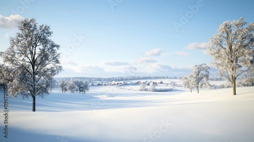 winter, snow, tree, village, landscape, winter landscape, peaceful, serene, calm, tranquil, quiet, idylli, cold, white, blue, sky, cloud, horizon, field, nature, outdoors, season, cold weather, winter scene, rural, countryside, frost, glacé, stillness, winter landscape, scenic, beautiful, picturesque, charming, bright, sunlit, clear, open space, huge, expansive, view
