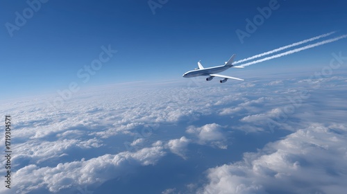 Soaring Above: An airliner ascends majestically through the sky, its contrails leaving a trail against a canvas of clouds. A scene that embodies travel and boundless exploration