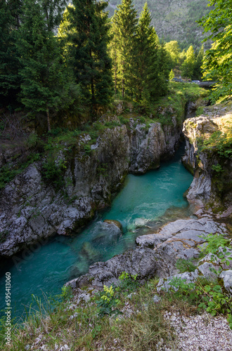 hiking, mountain, fall, turquoise, waterfall, beauty, landscape, emerald, travel, river, vale, gorge, canyon, stone, water, nature, natural, green, slovenia, park, europa, national, stream, view, mountain, beautiful, soca, scenic, scenery, tour tourism, destination