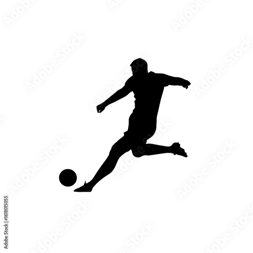 soccer, football, ball, athlete, kick, playing, field, game, match, competition, player, action, silhouette, kicking, black, white, movement, goal, energy, dynamic, active, training, practice, skill, technique, speed, agility, powerful, strong, focused, determination, passion, enjoyment, dedication, effort, victory, challenge, stadium, arena, pitch, sportsmanship, fitness, health, recreation, pastime