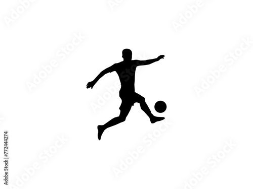 Soccer player silhouette. Soccer player kicking ball.