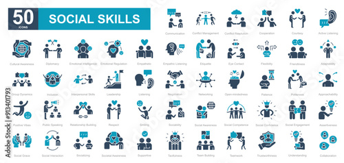 adaptability, assertiveness, collaboration, communication, cooperation, courtesy, diplomacy, etiquette, eye contact, flexibility, friendliness, inclusion, leadership, listening, negotiation, networking, patience, politeness, respect, smiling, sociability, socialising, supportive, teamwork, trustworthiness