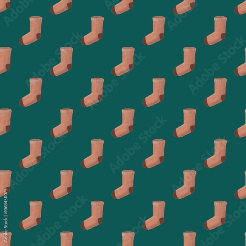 Socks Seamless Pattern Design with Blue Green Background