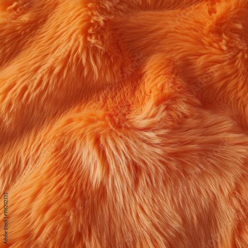 Soft and Plush Orange Faux Fur Fabric Texture in Close-up: Ideal for Textile Advertising, Home Décor Inspiration, and Fashion Design Projects
