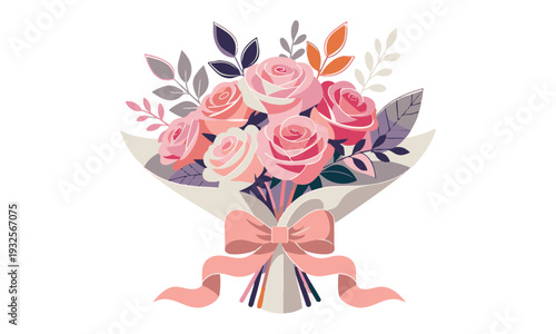 Soft Color Rose Bouquet Illustration Elegant Wedding Floral Arrangement vector illustration, easily editable.