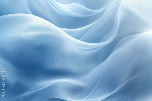 Soft flowing translucent fabric waves in light blue with a dreamy and ethereal texture, creating a calming and elegant abstract background perfect for design, art, and creative projects