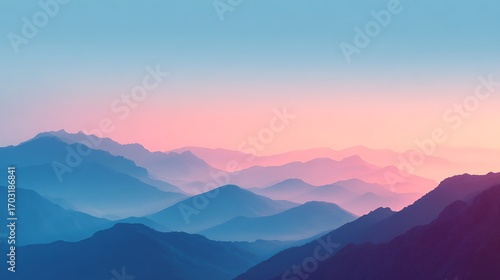 Soft hues blend seamlessly across distant mountain ranges, evoki