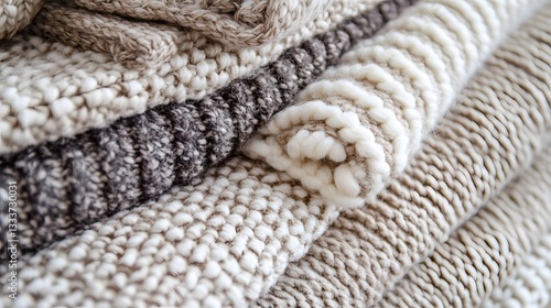 beige, brown, off-white, texture, fabric, closeup, stack, warm, cosy, winter, clothing, threaded, stitch, wool, soft, comfortable, hand-made, textile, craft, knitted, sweater, winter fashion, home decor, lifestyle, cream, pile, folded, closeup, texture, background, material