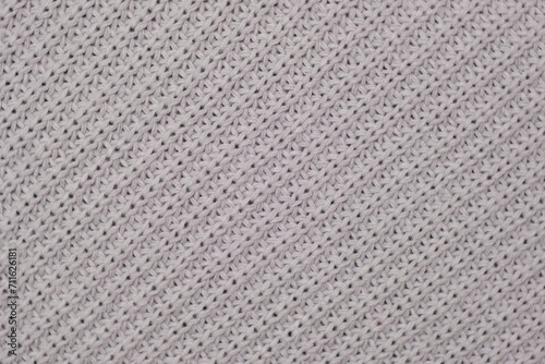 Soft Knitted Woolen Detailed Texture. Natural Fabric Closeup Knit Pattern. Gray Knitwear, Warm Cashmere Surface. Rotation, Macro. Cozy Textile Background. Clothes Production. Melange Yarn. 4K Shot