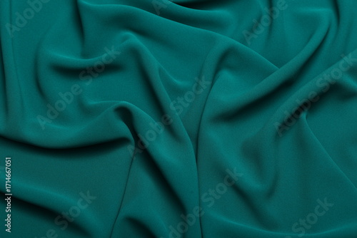 Soft lightweight flowy georgette fabric in teal green, elegantly draped with natural folds. Perfect for fashion design, textiles, sewing, dressmaking, and delicate feminine style concepts.