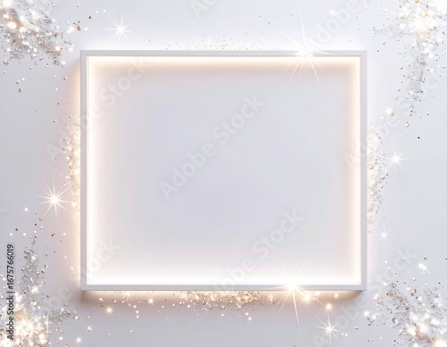 Soft pastel and white glowing decorative frame, subtle sparkle with transparent center