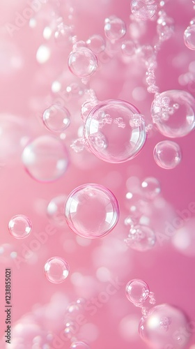 Soft Pink Background with Clear Bubbles Floating in the Air