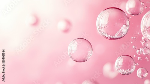 Soft pink bubbles floating gracefully in the air, with an empty backdrop, ideal for creative use and text placement.