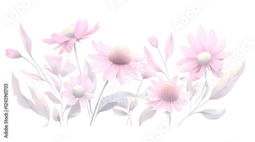 Soft Pink Floral Arrangement with Delicate Leaves and Petals